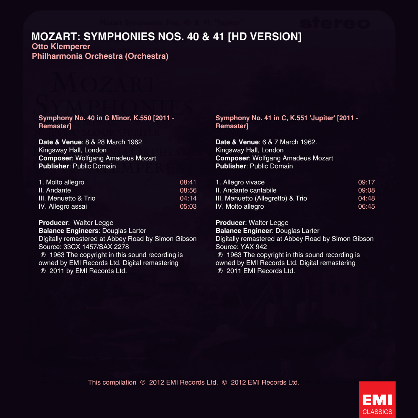 Index of /mnt/media_rw/ROSEDISK/Mozart - Symphonies Nos.40 & 41 - Philharmonia Orchestra, Otto Klemperer (1963) [96-24]