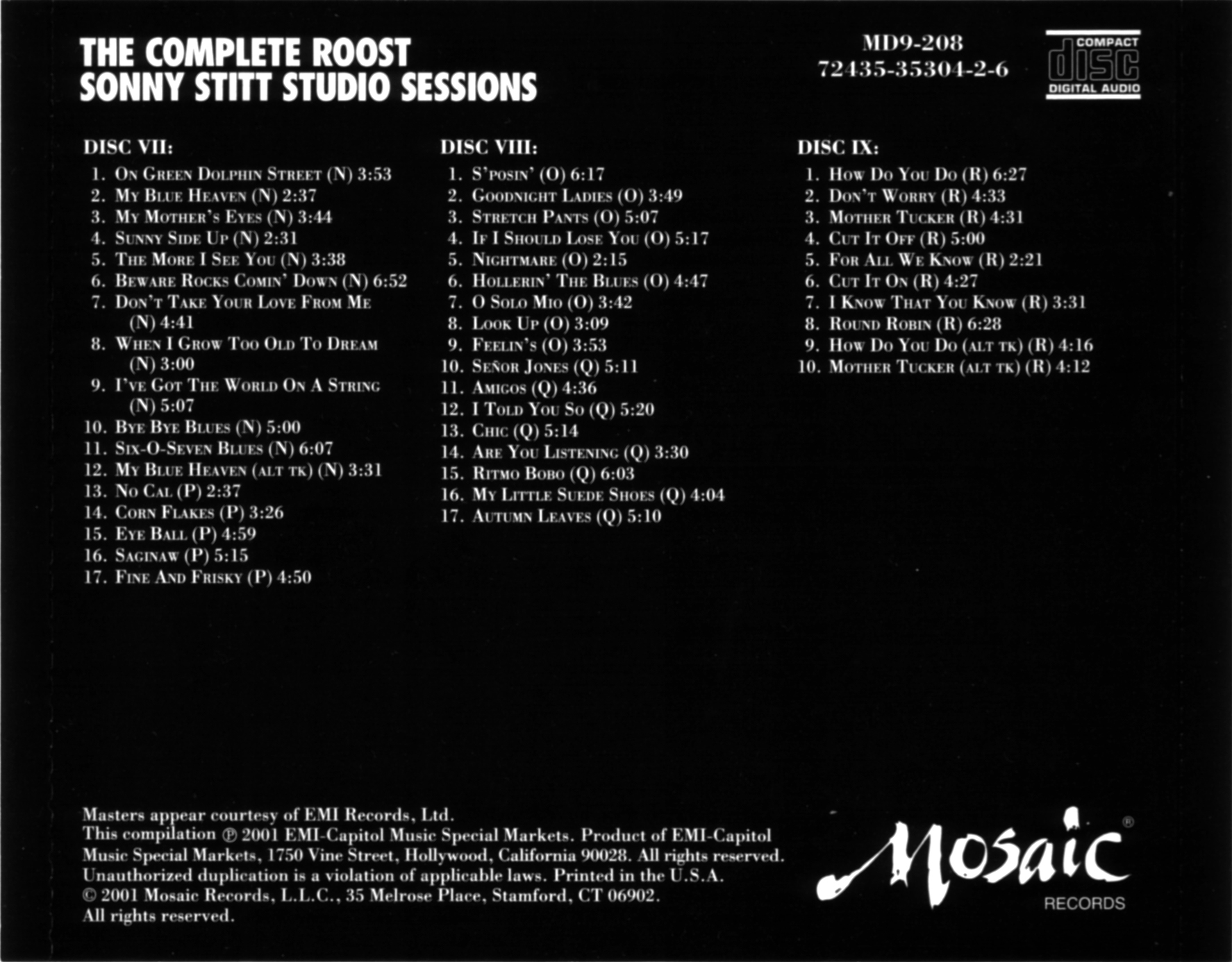 The Complete Roost Sonny Stitt Studio Sessions CD 7/